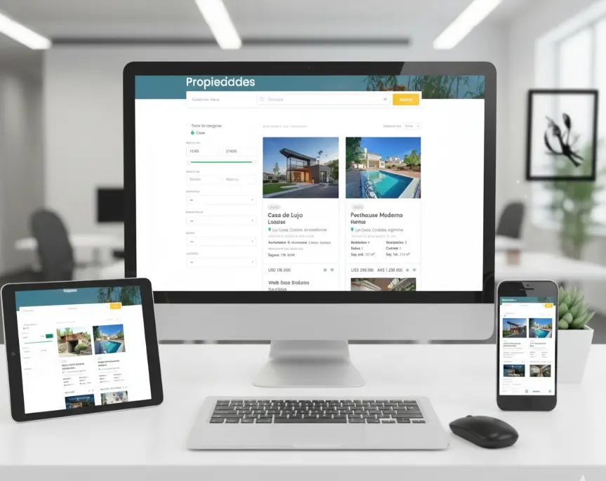 Tu sitio web se verá perfecto en cualquier dispositivo. El 70% de las búsquedas inmobiliarias se realizan desde móviles, por eso optimizamos cada detalle para la mejor experiencia del usuario.